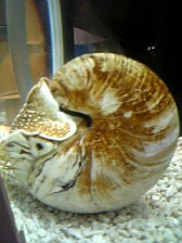 ← 〔これは岡山の移動水族園で見て感激したオウムガイ。私が見た時はごちんと底に沈んでいましたが…〕