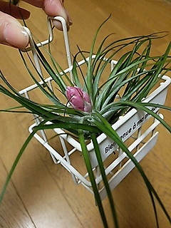 先の日記にも書いた、エアプランツ・初めての蕾、ストリクタソフトリーフ(100均)。