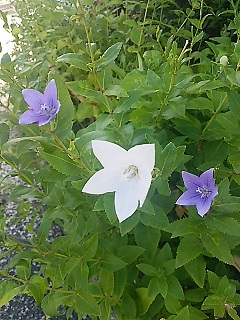 ちょうど紫や白の桔梗の花が咲いており、きれいでした。そういわれてみると確かに。