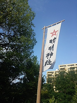 降りるバス亭がちょっと違ったらしく、スマホを頼りに歩き歩き。近づいてくるとご近所の家々に五芒星がはってあり。地域の方々にも親しまれている神社なのですね~。