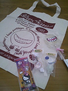 「妖怪馬鹿」のロゴにつられてバッジもつい買ってしまう妖怪馬鹿。