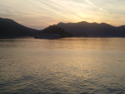 坂道の上からくる水の流れやら、展望台のとこの土産屋のすだれの屋根(?)で傘閉じたけど「まだ雨だった」やら、亀の上陸!? やら、おかしかったです。尾道水道、亀いるの?