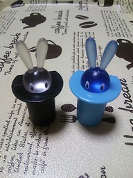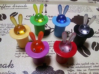 昔、青いのに一目惚れしてからずーっと欲しかったんだけど、手が出せるお値段じゃなくて、結局いまだに手に入れてないのです(だってつまようじ入れに3675円てっ)。自分の生活環境にも合わないしね;。マジックバニーっていうんだよ。