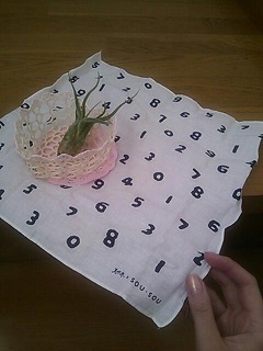 SOU・SOU ってお店の名前聞き覚えがあると思ったら、2008年に天然水とコラボした時の、おまけのハンカチ私持ってた(おまけ好きな時代)。すうじの柄が一番かわいいなぁと思って。
