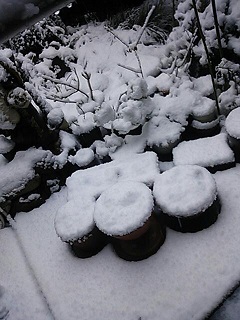 この冬初めての雪ーーー!! ほんとに積った。しかも近年になく深い。10センチもあった?