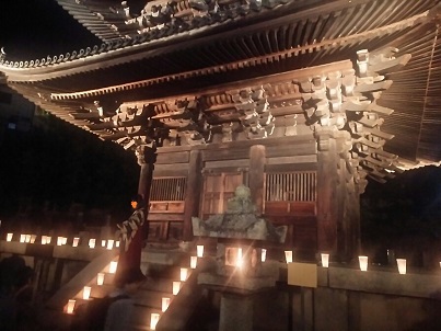 お寺めぐりコースのお寺(のどこか;)。境内もそれぞれ灯りで彩られて、見ごたえがあります。